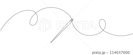 Continuous linear needlepoint pattern. Single line tailor's needle mark. Tailor's sign template. Vector editable linear illustration