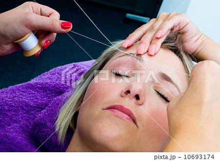 woman having threading hair removal procedure