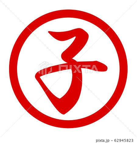 年賀イメージ 和柄と筆文字イラストの「子」 赤背景