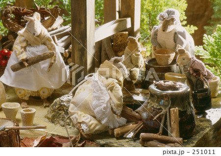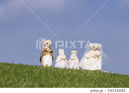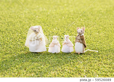 4人家族 ねずみのファミリー 家族イメージ ネズミの人形 ピクニック イメージ素材