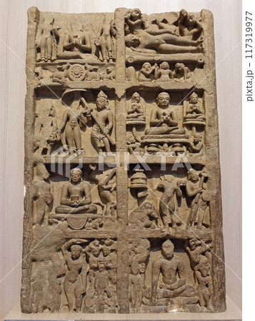 ガンダーラ美術の中心パキスタンのペシャワル博物館に展示されるレリーフ