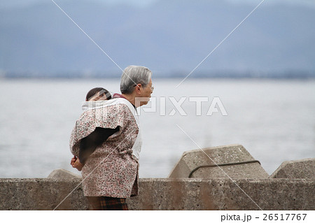 孫をおんぶするお婆ちゃん