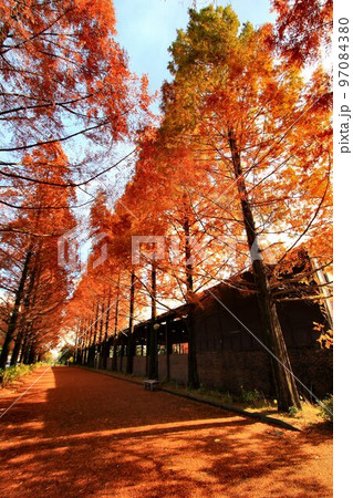 紅葉燃ゆる…錦秋のメタセコイヤ並木