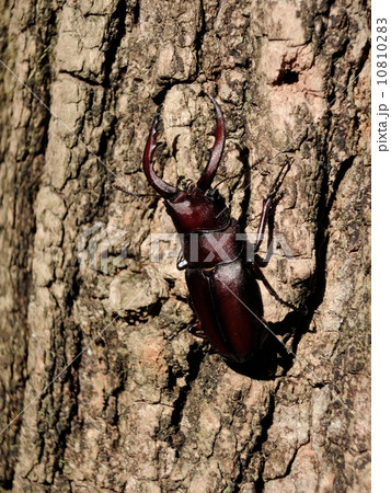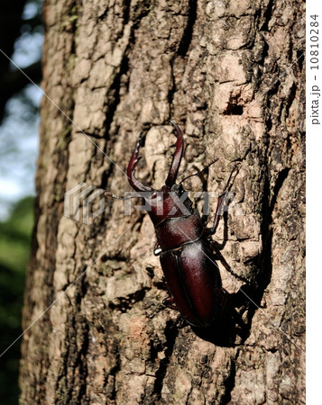 国産ノコギリクワガタの樹木の上で 黒背景
