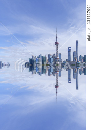 上海外灘陸家嘴城市天際線倒影