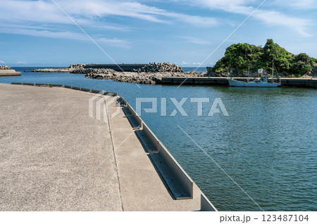 青空と風力発電が映える三浦市宮川港の漁港風景 静かで美しい漁港