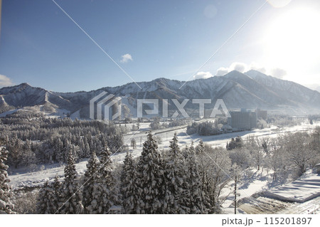 降雪の翌朝 快晴の山間部 風景