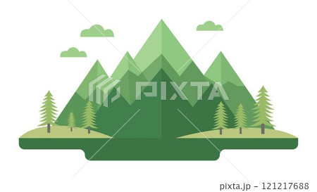 Green Mountain Nature View Landscape with Pine Fir Conifer Trees in Forest
