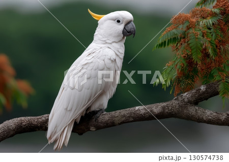 Beautiful white cockatoo perched on a branch in a lush green environment during daylight