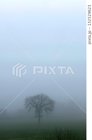 A Solitary Tree Standing in a Foggy and Mysterious Landscape Capturing Natures Mystique