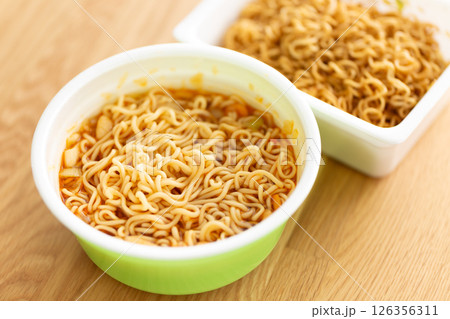 麺が伸びたカップラーメンとカップ焼きそば