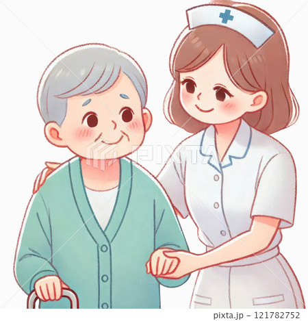 smiling nursing help mature elderly woman
