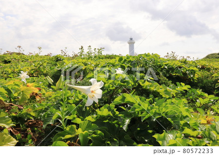 沖縄 宮古島市 テッポウユリと平安名埼灯台