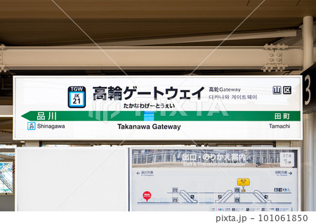 ホーム上にある駅名標【高輪ゲートウェイ駅】
