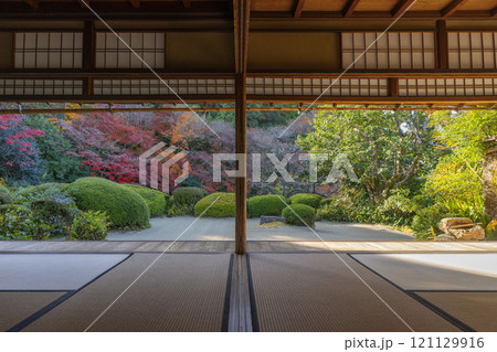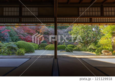 秋の京都 詩仙堂 詩仙の間から見る紅葉が色づく庭園