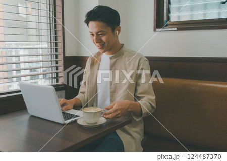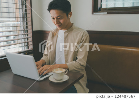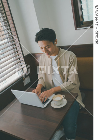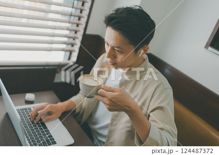 ノートパソコンに向かう若い男性 リモートワーク テレワーク イメージ