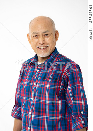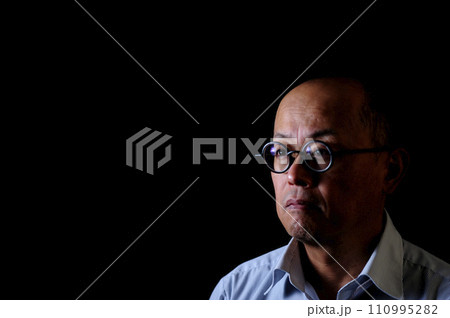 Bald in the middle head and begin no loss hair glabrous of mature Asian business smart active office man.