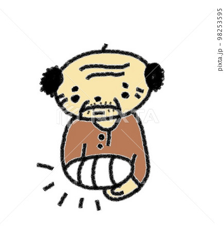 満開の桜の木の下で体操をするお爺さん達のカラーイラスト