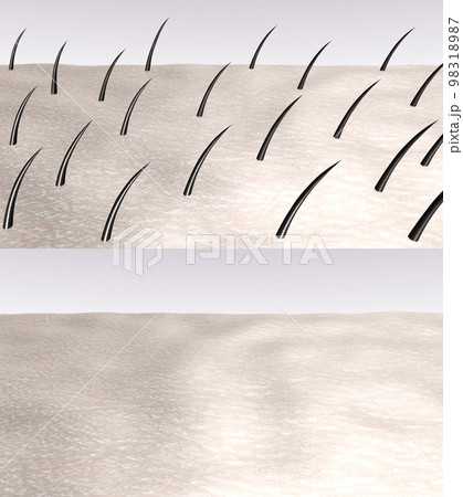 Skin before and after shaving, waxing, sugaring, epilation, laser hair removal 3d rendered illustration