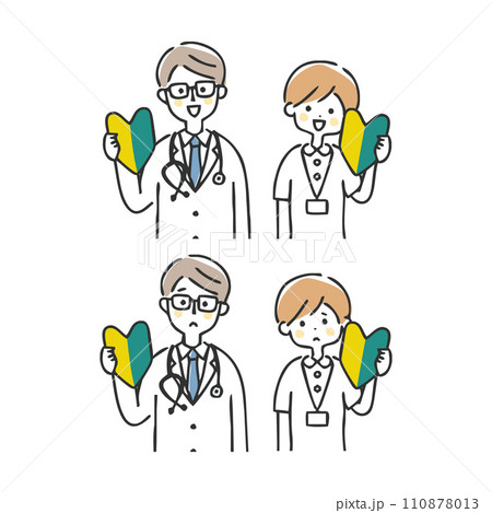 初心者マークを掲げるつなぎ作業服の男女 セット