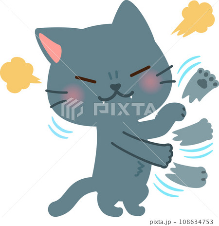 後ろ脚で立ち上がってパンチする猫