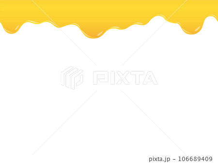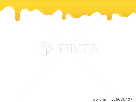 垂れる蜂蜜・バター・チーズ・オイル・マーマレード・インクのイラスト 黄色地 A-01