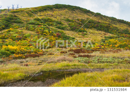 紅葉の黒菱平鎌池湿原 長野県白馬村