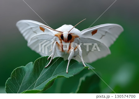 Beautiful white butterfly resting on green leaf in a tranquil garden at midday during summer