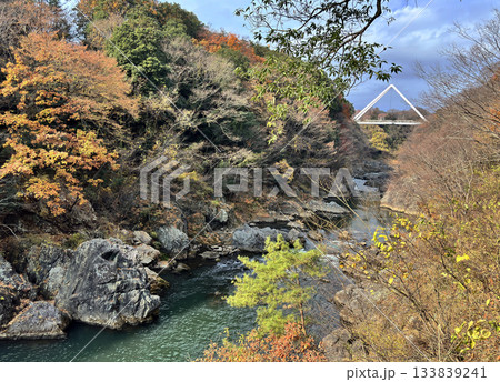 ながめ公園 高津戸橋 渡良瀬渓谷 紅葉はじめ 秋の風景