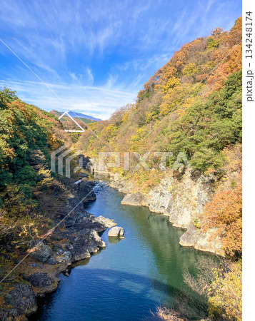 渡良瀬渓谷の高津戸峡/青い空と渡良瀬川/群馬県みどり市大間々