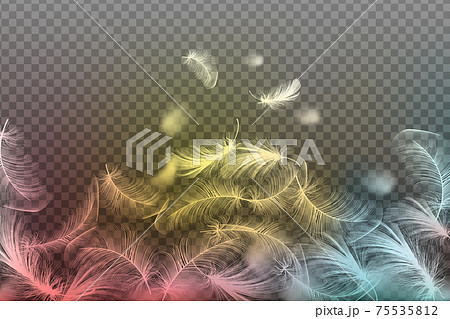 Ecological feather filler for pillows, blankets or jackets.Realistic vector goose or chicken feathers.