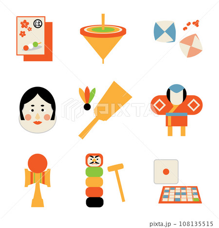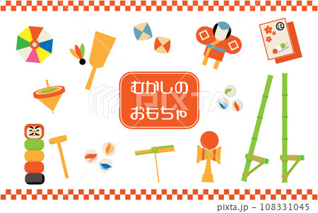 日本のおもちゃ 昔の遊び かわいいイラスト素材