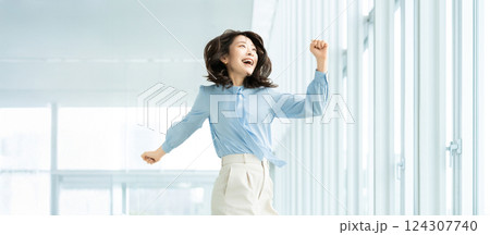 飛び跳ねて喜ぶ女性・ビジネスウーマン