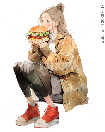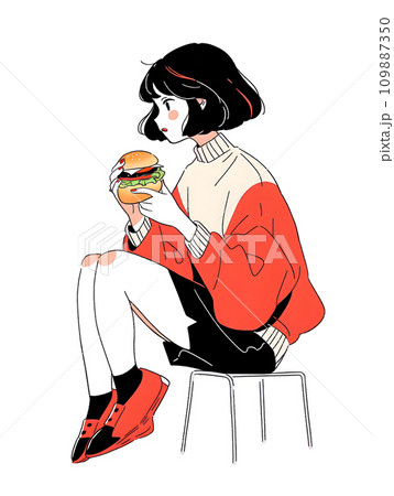 ハンバーガーを食べる女性