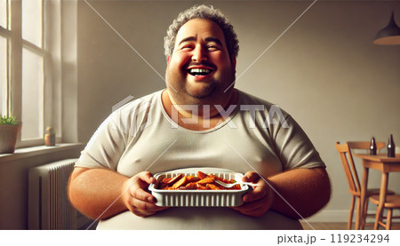 食事をする太った男性