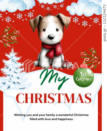 Cute Puppy Christmas Card Adorable Dog with Red Scarf, Festive Holiday Greeting Design