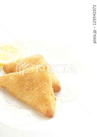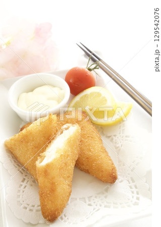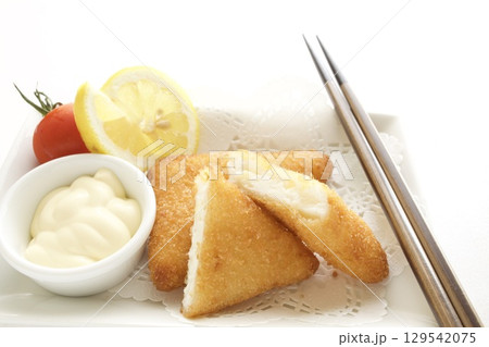 皿に乗せた黒はんぺんのフライ、揚げ物