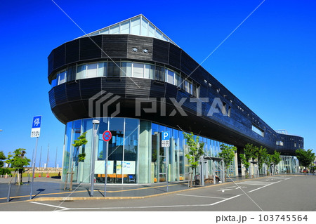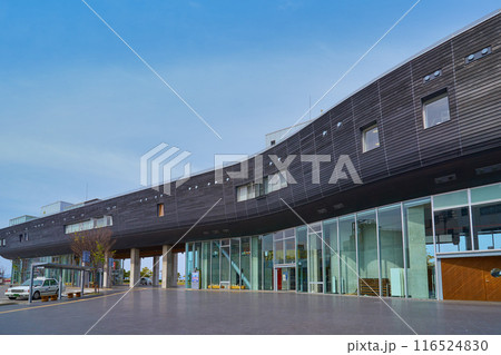 愛媛県今治市のみなと交流センター(はーばりー)を北側から見る
