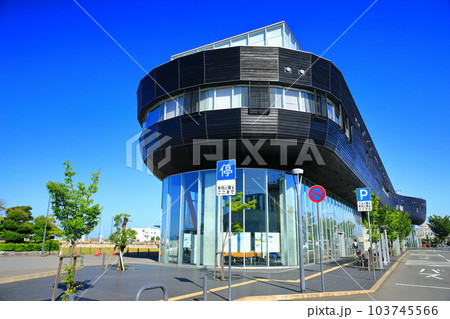 愛媛県今治市のみなと交流センター(はーばりー)を南側から見る