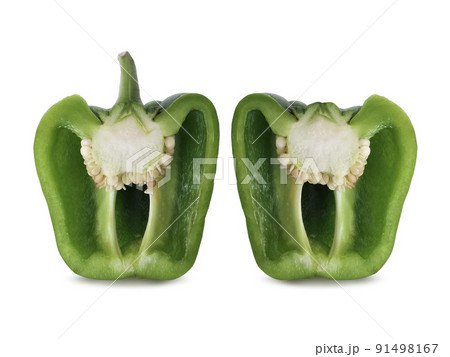 Fresh slices red and yellow bell pepper isolated on white background. Vector