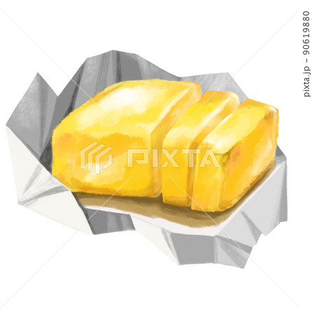 butter in foil yellow milky spread dairy product watercolor painting illustration