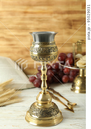 Communion Still life with chalice of wine and bread