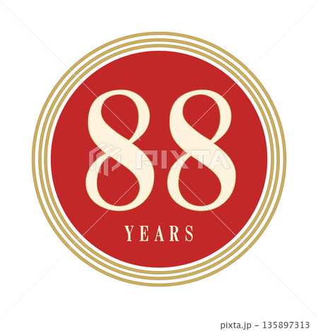 88周年・88歳の記念に使える円形アイコン, 赤とゴールドのシンプルデザイン