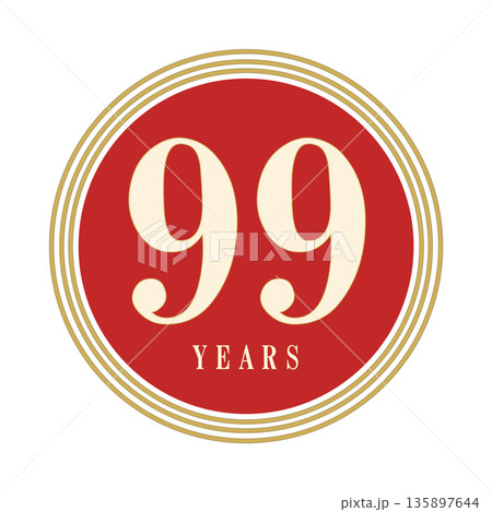 99周年・99歳の記念に使える円形アイコン, 赤とゴールドのシンプルデザイン