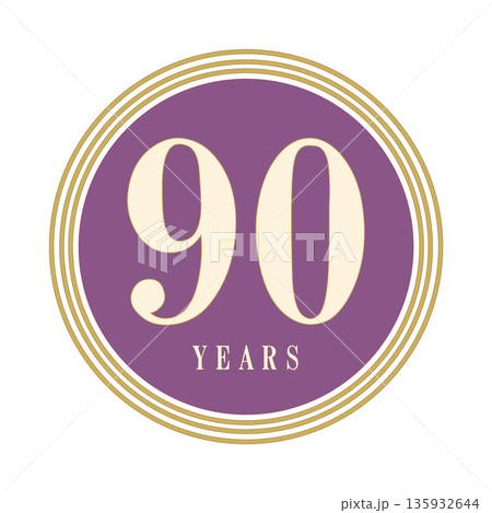 90周年・90歳の記念に使える円形アイコン, 紫とゴールドのシンプルデザイン