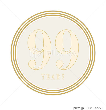99周年・99歳の記念に使える円形アイコン, 白とゴールドのシンプルデザイン