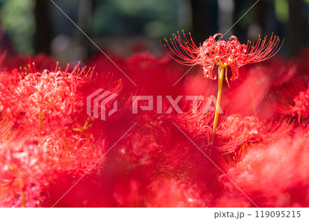 【秋素材】朝日を浴びる彼岸花【長野県】