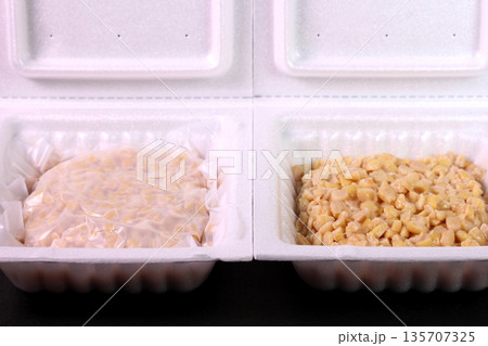 パック入りのひきわり納豆(フィルム付きと中身)