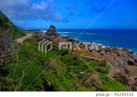 四国・室戸岬・室戸岬遊歩道・エボシ岩の展望台から眺めるびしゃご岩・高知県室戸岬町(2)