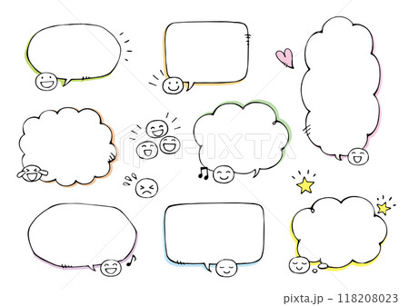 かわいい顔つき手描き吹き出しセット